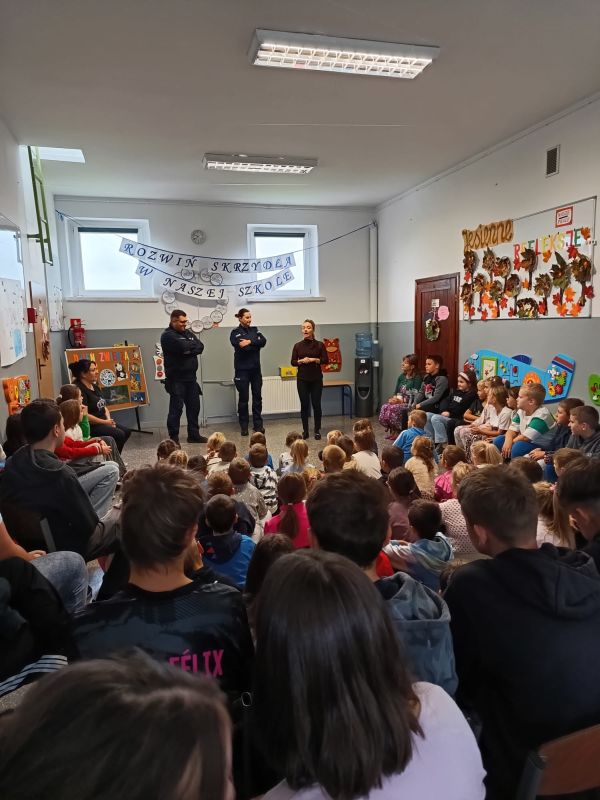 W ramach prowadzonych działań profilaktycznych mających na celu kształtowanie wśród młodych ludzi właściwych postaw oraz zwiększanie ich świadomości w zakresie unikania zagrożeń policjantka ze zgorzeleckiej komendy wspólnie z dzielnicowym z Pieńska odwiedziła uczniów Szkoły Podstawowej w Dłużynie Dolnej.