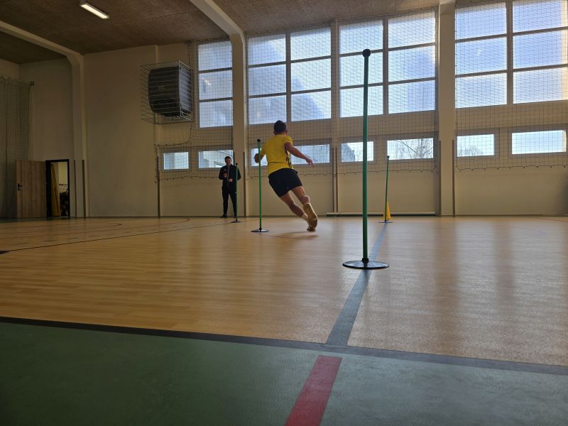 bieg z obieganiem stojaków w czasie 90 sekund – uzyskasz pozytywny wynik, jeśli wykonasz co najmniej 19 powtórzeń.